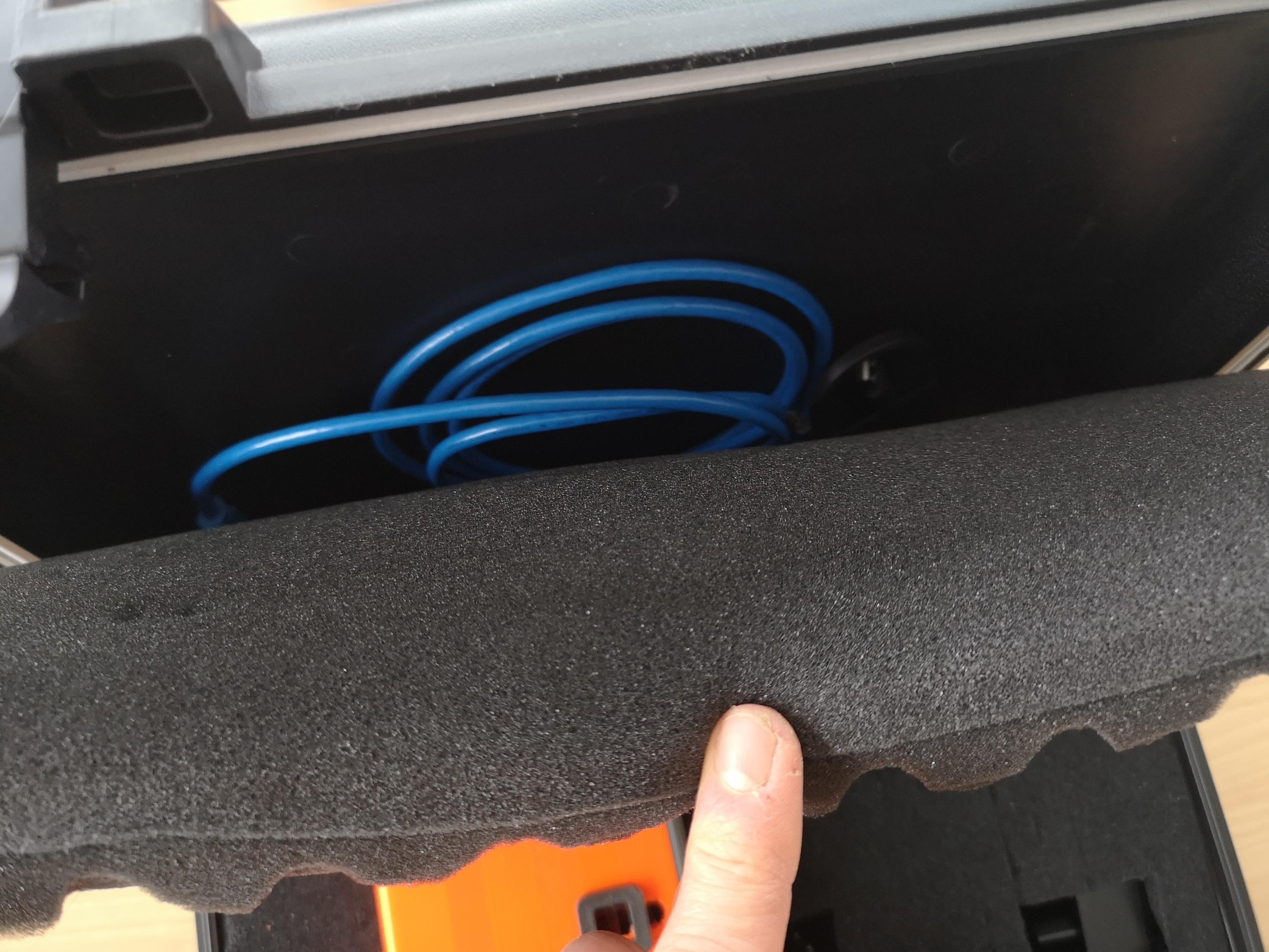 The cables are hidden behind the foam: