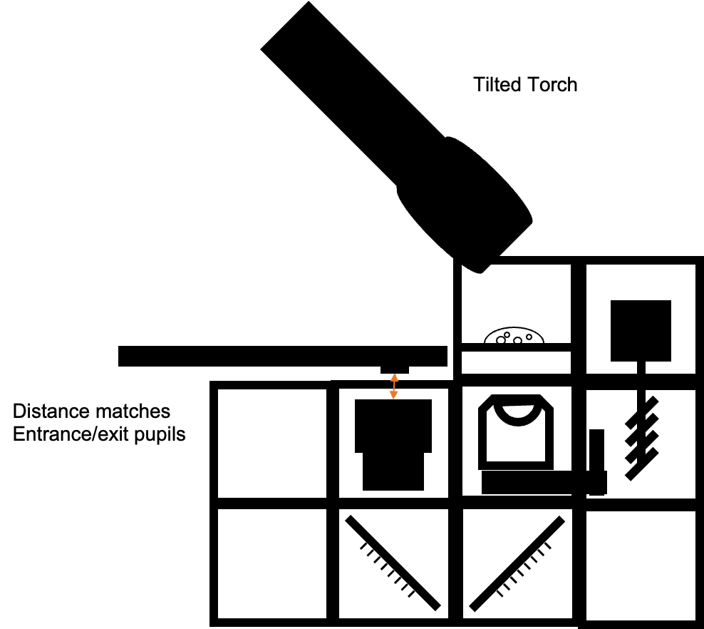 • The front lens of the flashlight can be focussed - move it to see a more-less homogeneous illuminated sample - this is koehler condition when the led is in focus of the condenser that you move