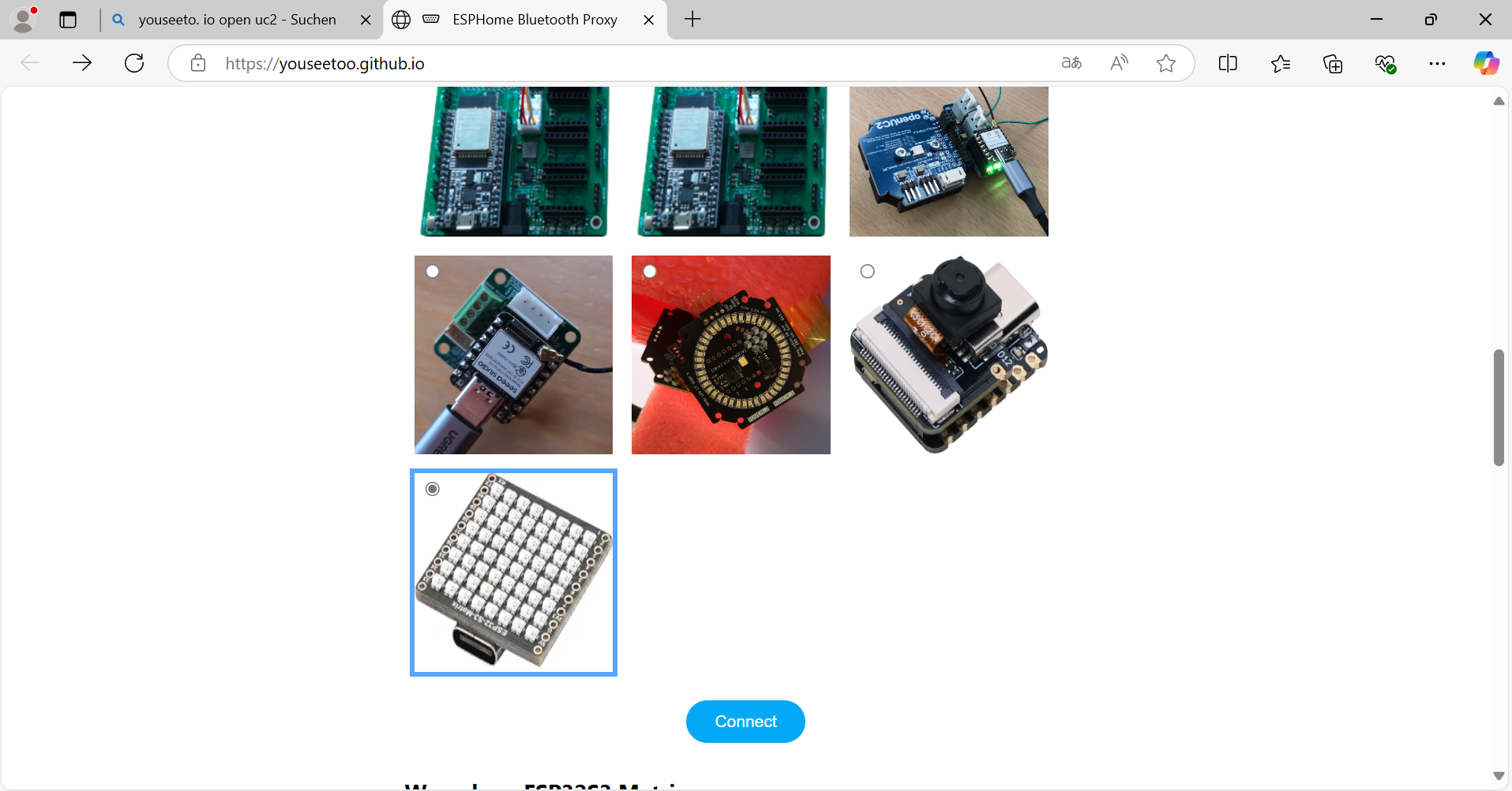 - 💡Connect your LED-matrix as well. Duplicate the current tab and connect the LED-matrix again via the button. Choose the correct COM Port.