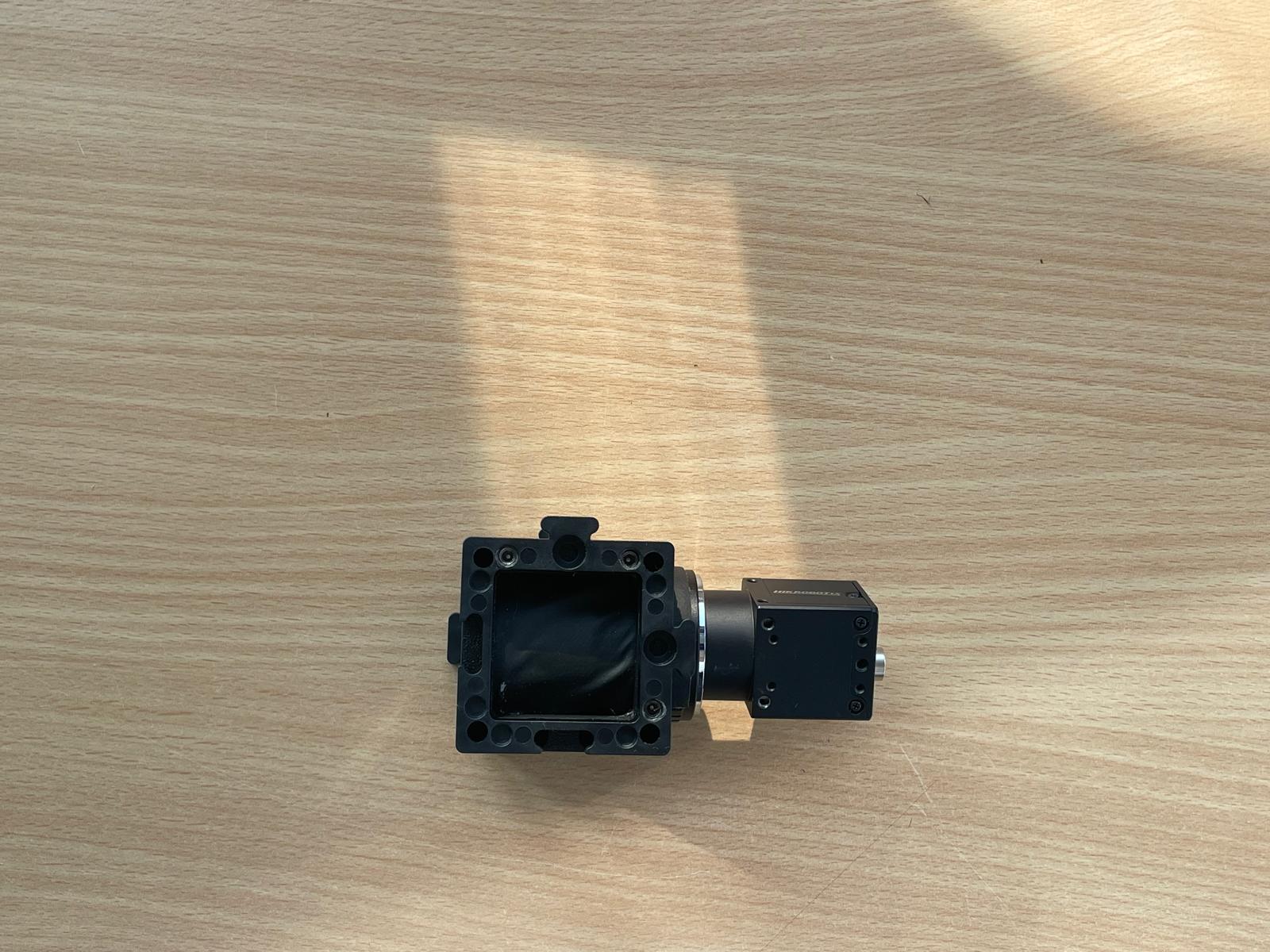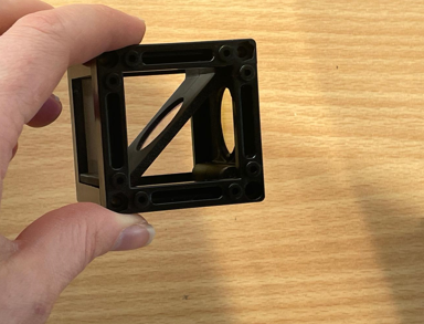 - Position the beamsplitter cube: Insert the beamsplitter cube (you can leave it empty for now, it will be needed when assembling the fluorescence microscope).