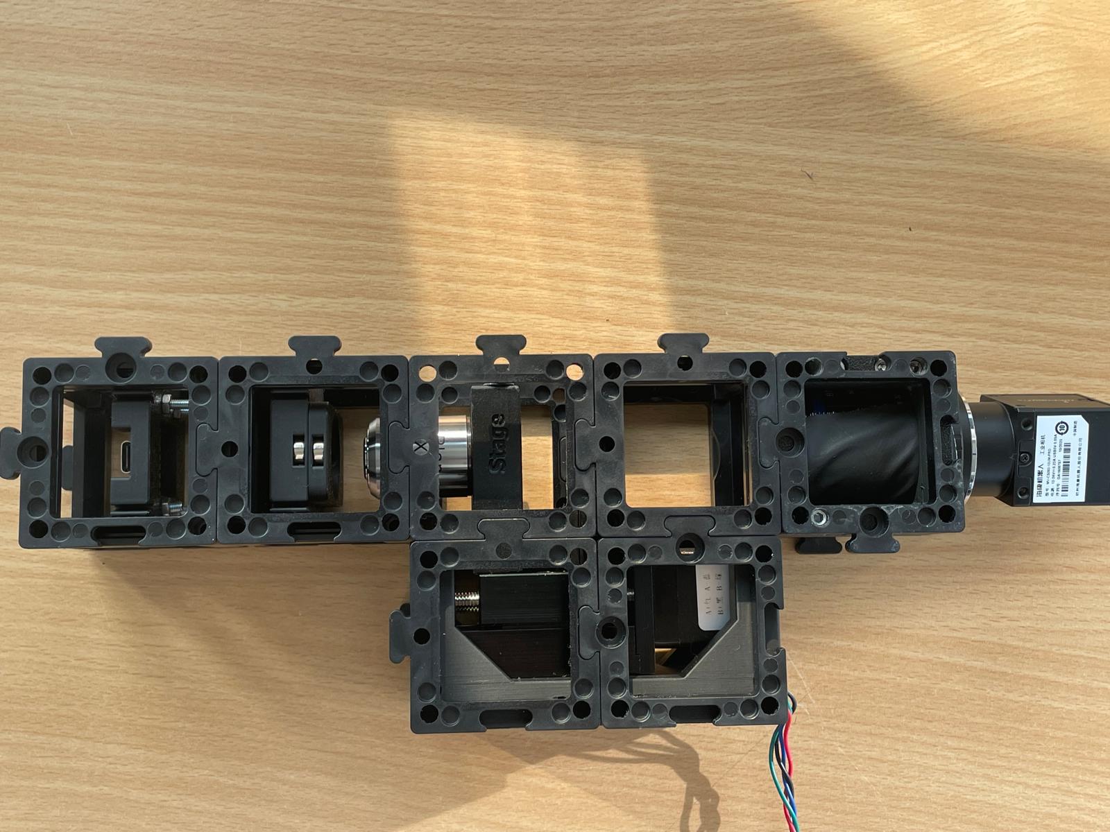 This guide will walk you through building the microscope step by step. You can follow the assembly process according to the functional groups or refer to the diagram above.