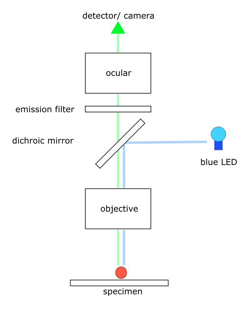 - Blue LED (for exciting fluorescence molecules).