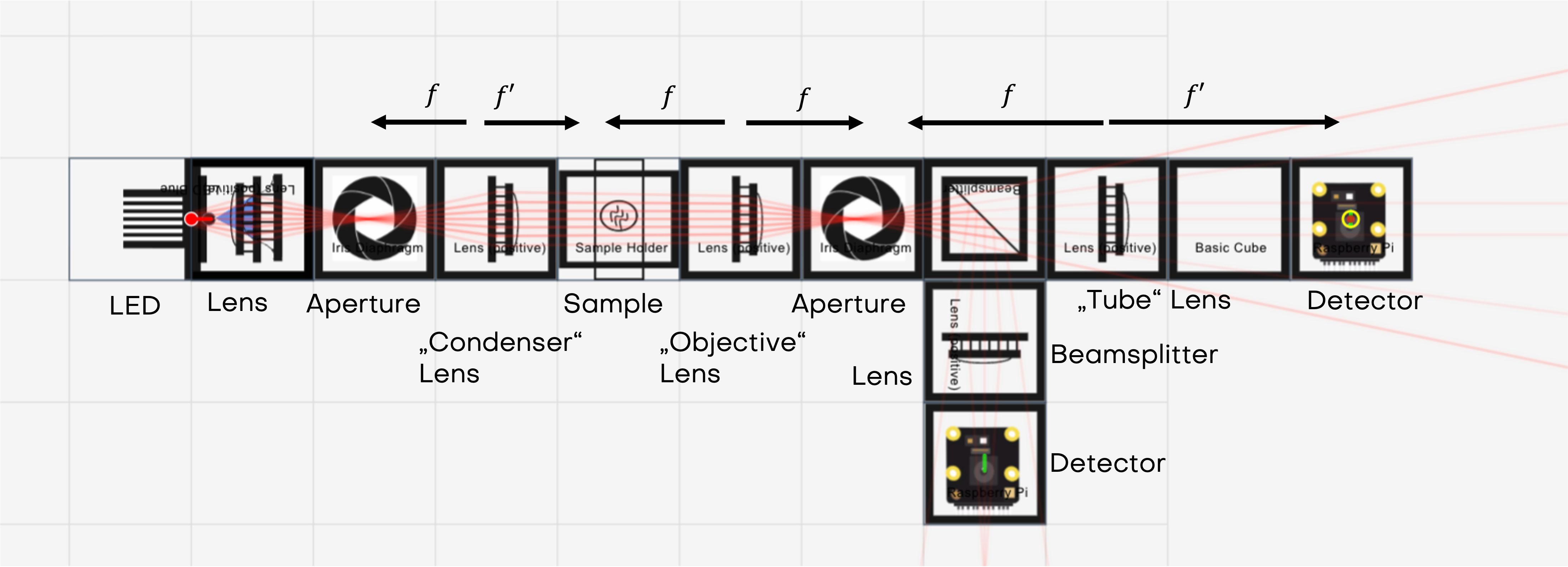 • Tube lens cube: plano-convex (f=100mmf=100\,\text{mm})