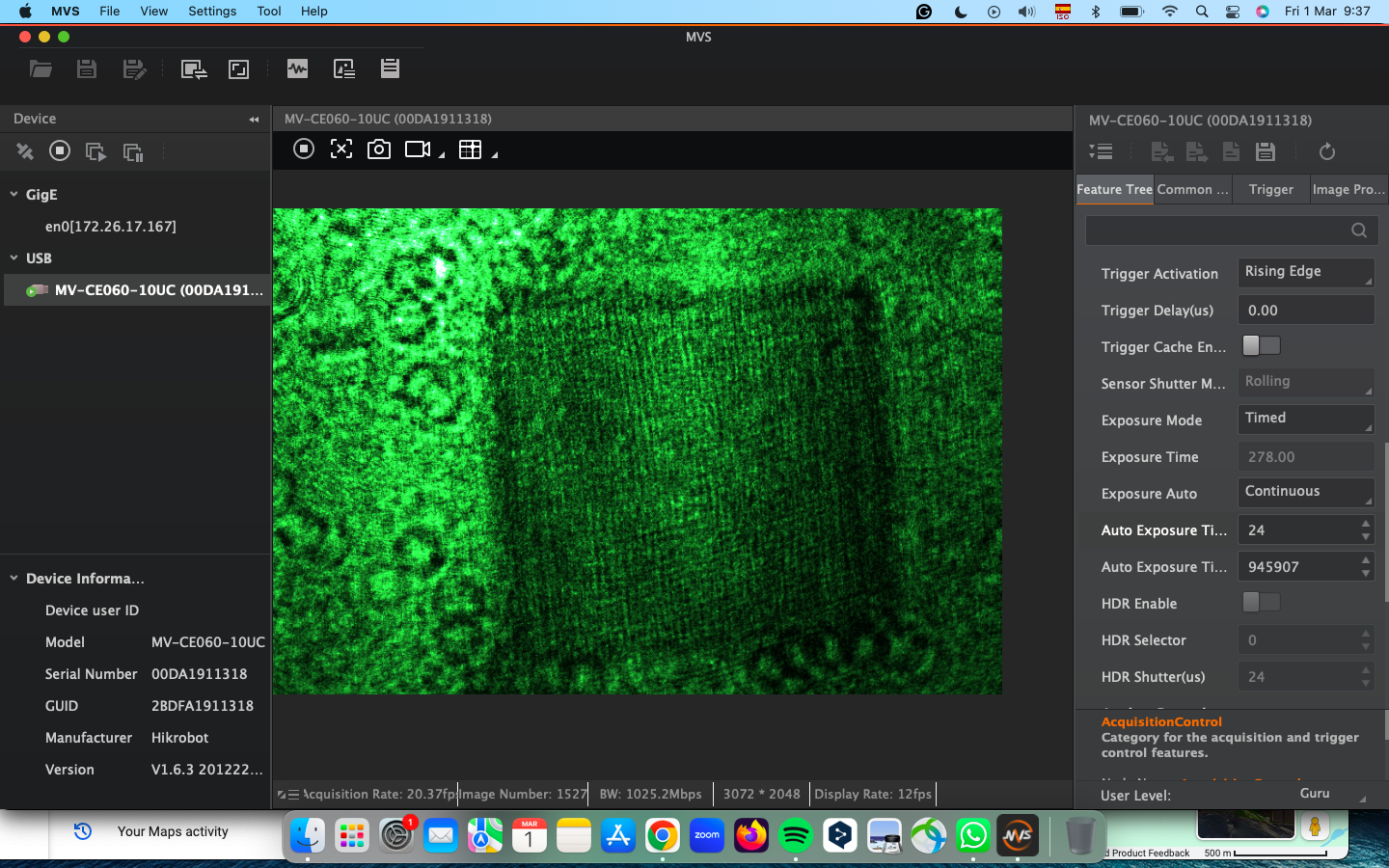 - HIKrobot Camera (MV-CE060-10UC) with USB cable (Hikrobot Camera Software installation)