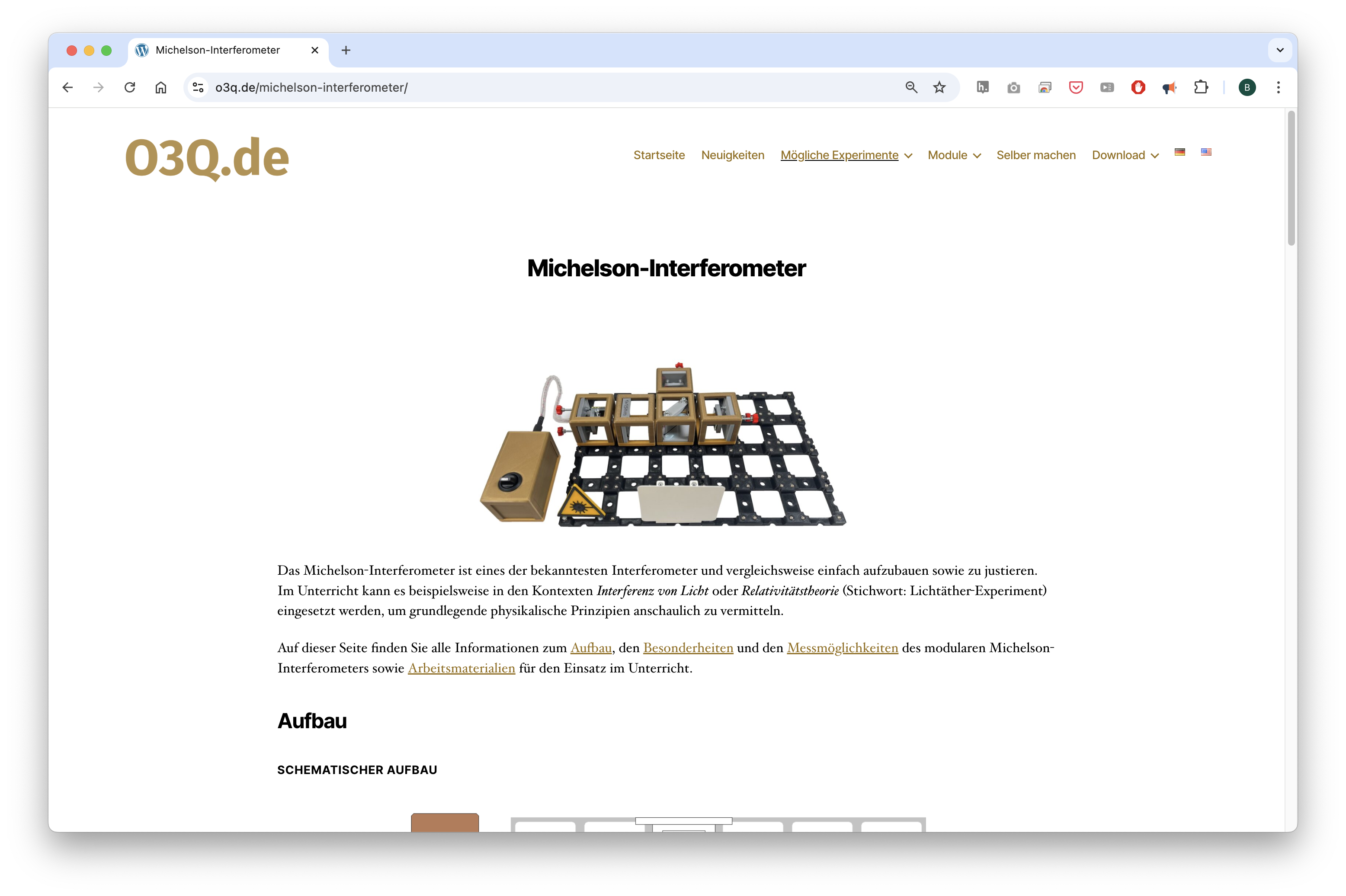 You can find them here: https://o3q.de/ -> Mögliche Experimente